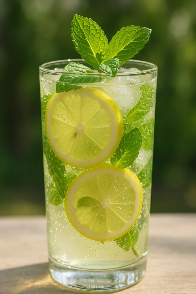 Adding fresh mint and sparkling water elevates basic lemonade into something special. The bubbles and mint create a sophisticated refreshing drink.